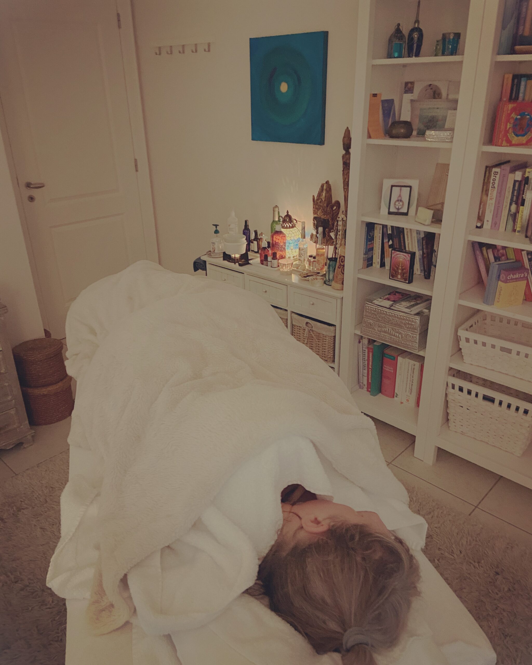 Met een tasje thee en een kennismakingsgesprek starten we deze Intuïtieve, relaxerende helende sessie. Ik kan zo zachtjes aanvoelen welke thema’s er bij jou leven. Na dit invoelgesprek mag je plaatsnemen op de massage tafel en vang ik aan met Healing.